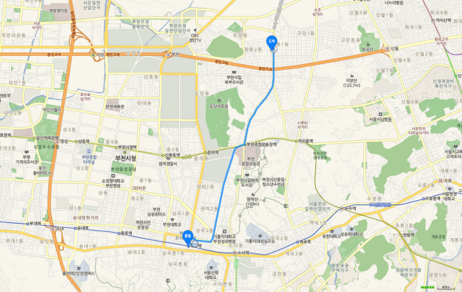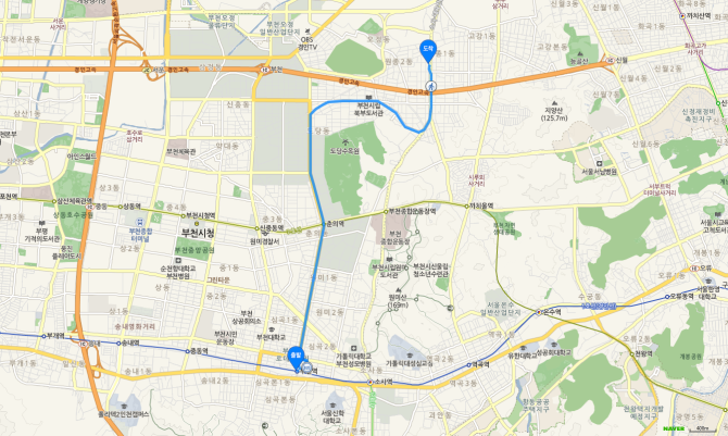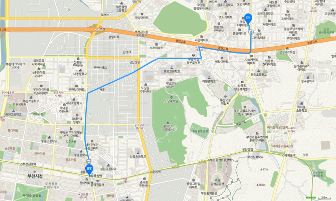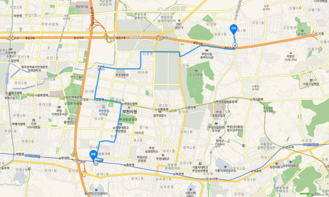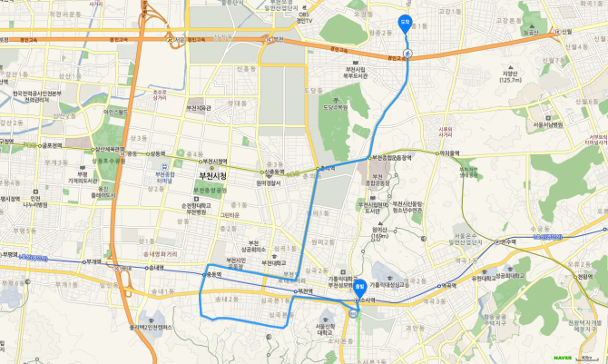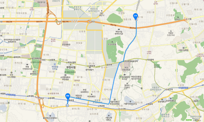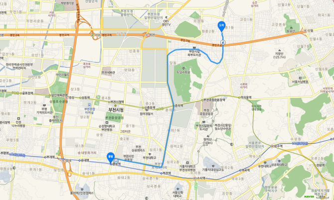 소사역 하차 후 75번 버스 오시는 길